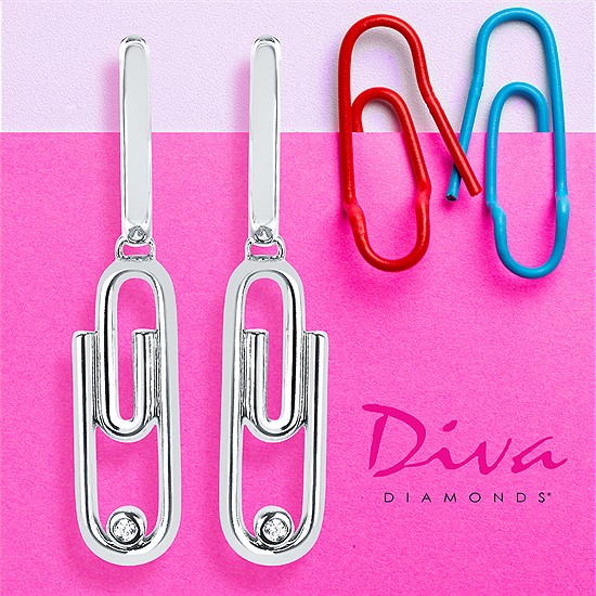 Diva Diamonds® Paper Clip Hoop Earrings In Sterling Silver With .01 Ct. Diamond