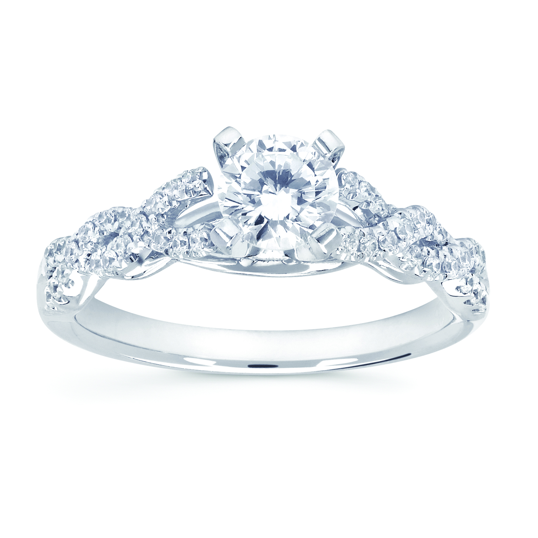 Engagement Ring Forever ElegantĀ® 1/5 Ctw. Diamond Semi Mount shown with 3/4 Ct. Round Center Diamond in 14K Gold