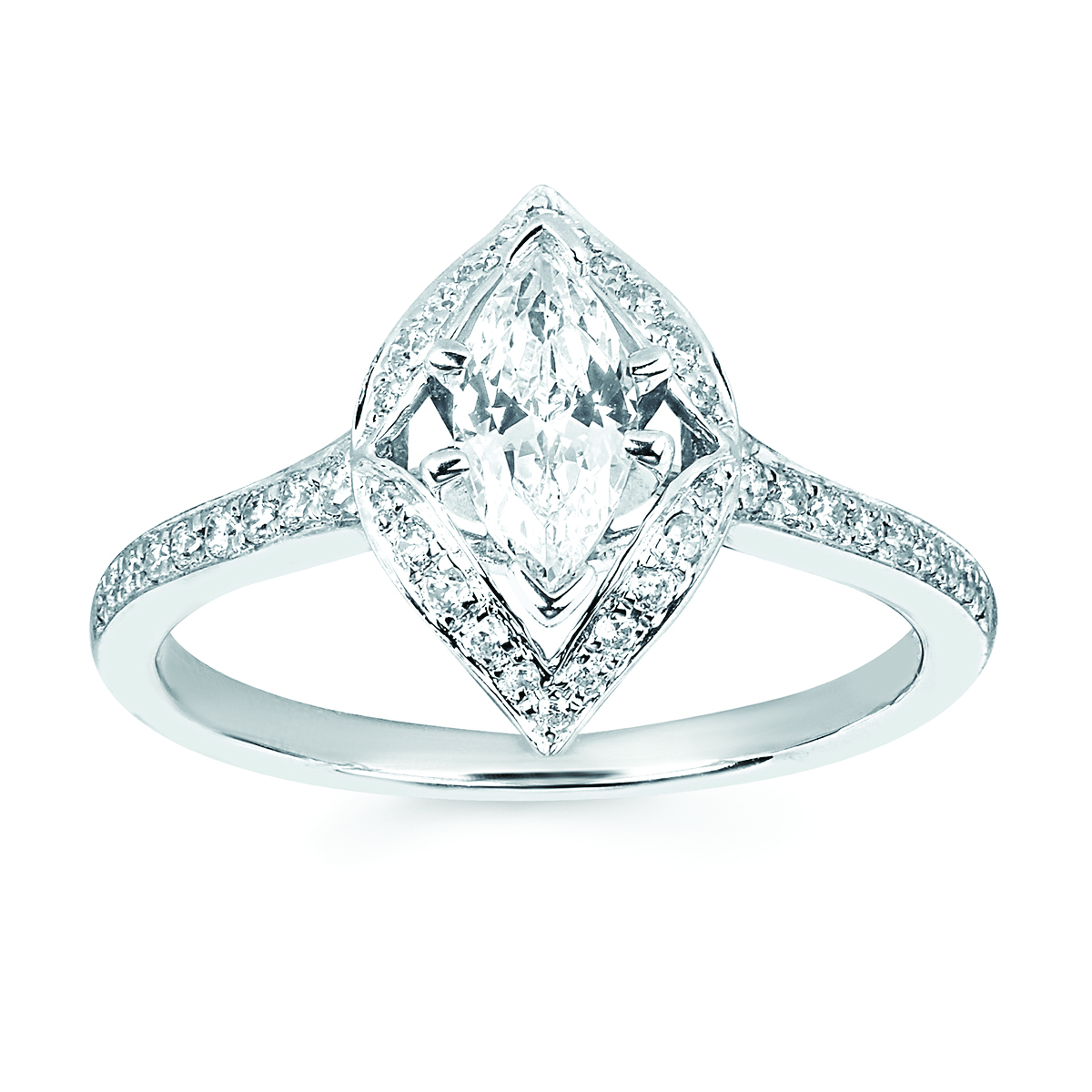 Engagement Ring Forever ElegantĀ® 1/5 Ctw. Diamond Semi Mount shown with 3/4 Ct. Marquise Center Diamond in 14K Gold
