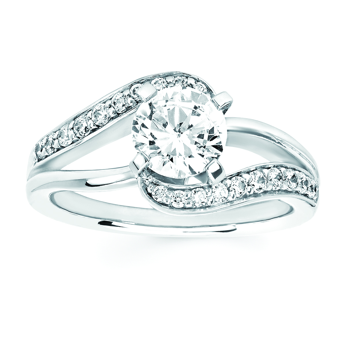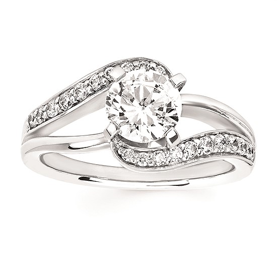 Engagement Ring Modern Bridal: 1/4 Ctw. Diamond Split Shank Semi Mount shown with 1 Ct. Round Center Diamond in 14K Gold
