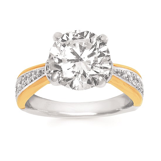 Engagement Ring Classic Bridal: 1/4 Ctw. Diamond Semi Mount shown with 3 Ct. Round Center Diamond in 14K Gold