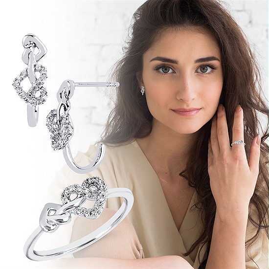 Love Lock⢠1/6 Ctw. Diamond Heart Knot Earrings In Sterling Silver